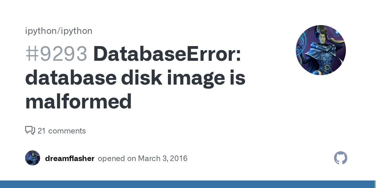 DatabaseError: database disk image is malformed ?? Issue #9293 ?? ipython/ipython